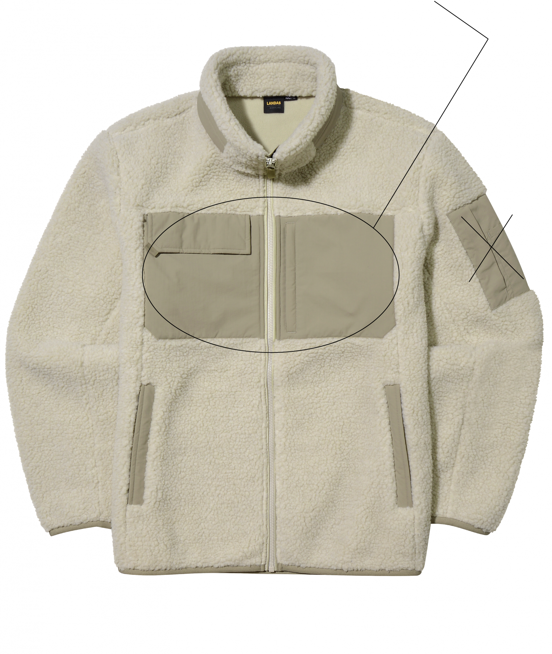 본 제품의 프린팅 가능한 부위는 양쪽 가슴 주머니입니다. (봉제선이 많은 어깨 부분은 불가)