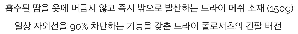 드라이 메쉬 티셔츠는 단 1초만에 땀을 빨아들임